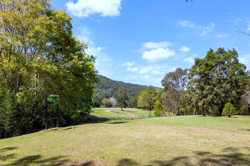 I don’t know the acreage of the Canungra Area club, but it seems quite large. If you are walking you will find the walk from the 1st green to the second tee gives a clue as to the Area in the title. It’s the length of a fairly long Par 4 and longer on the way back from the 7th green to the 8th tee. So what we have is two parts separated by a river. Nice view though.